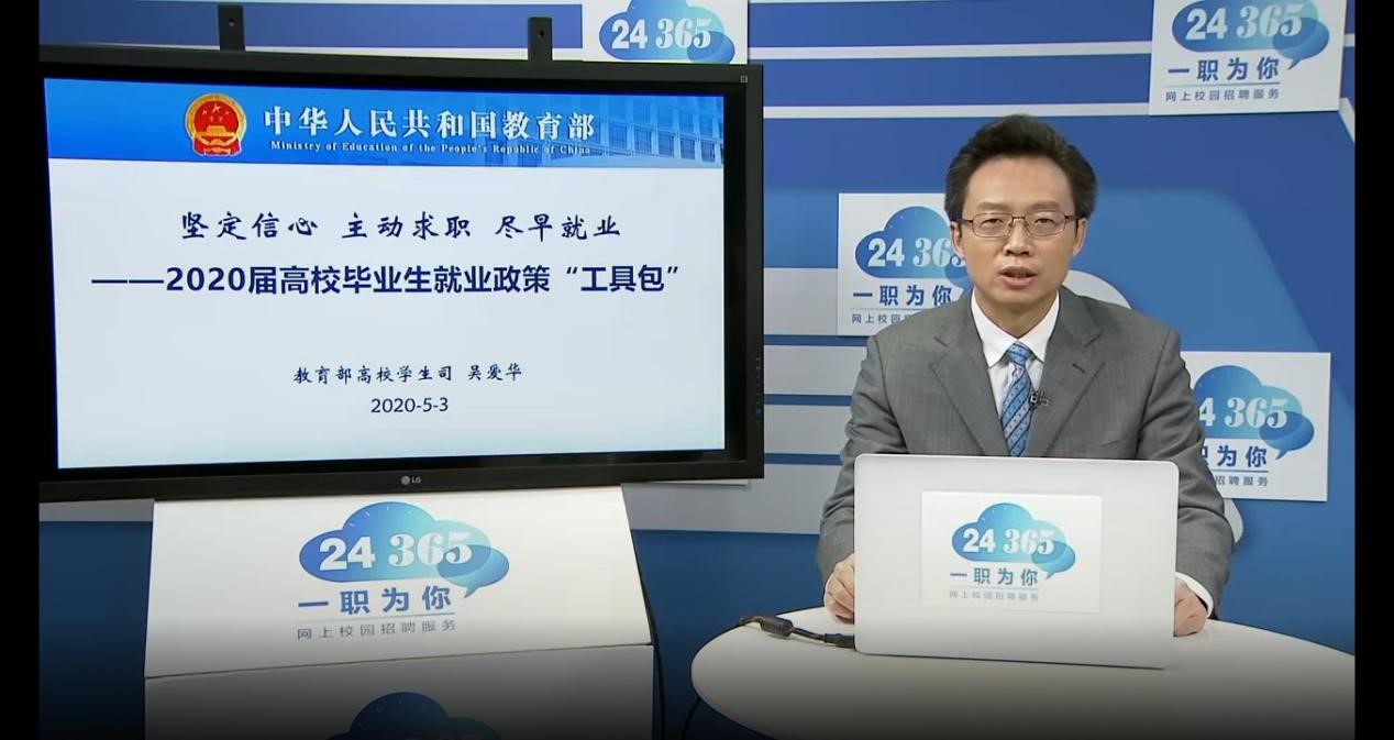 为帮助学生适应线上招聘形势、提升学生求职能力,5月3日19:00,管理艺术学院组织毕业班辅导员老师和全体毕业生通过学习强国、新华网、中国教育网络电视台、BILIBILI直播等平台观看由教育部组织开展的24365招聘平台直播高校就业创业公益课程之“坚定信心·主动求职·尽早就业”——2020届高校毕业生就业政策工具包”主题直播课程,教育部高校学生司副司长吴爱华担任主讲。