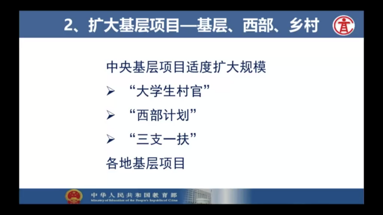 三、扩展就业渠道,开展形式多样的就业指导。学校扩大校招企业的数量,提供更多的岗位。鼓励毕业生自主创业,注重学生就业与创业观念的转变,使学生由被动就业转变为主动创业,加大对大学生自主创业的支持力度。加大高校毕业生农村基层服务项目的宣传,“三支一扶”计划、大学生村官计划等政策多渠道就业方式。