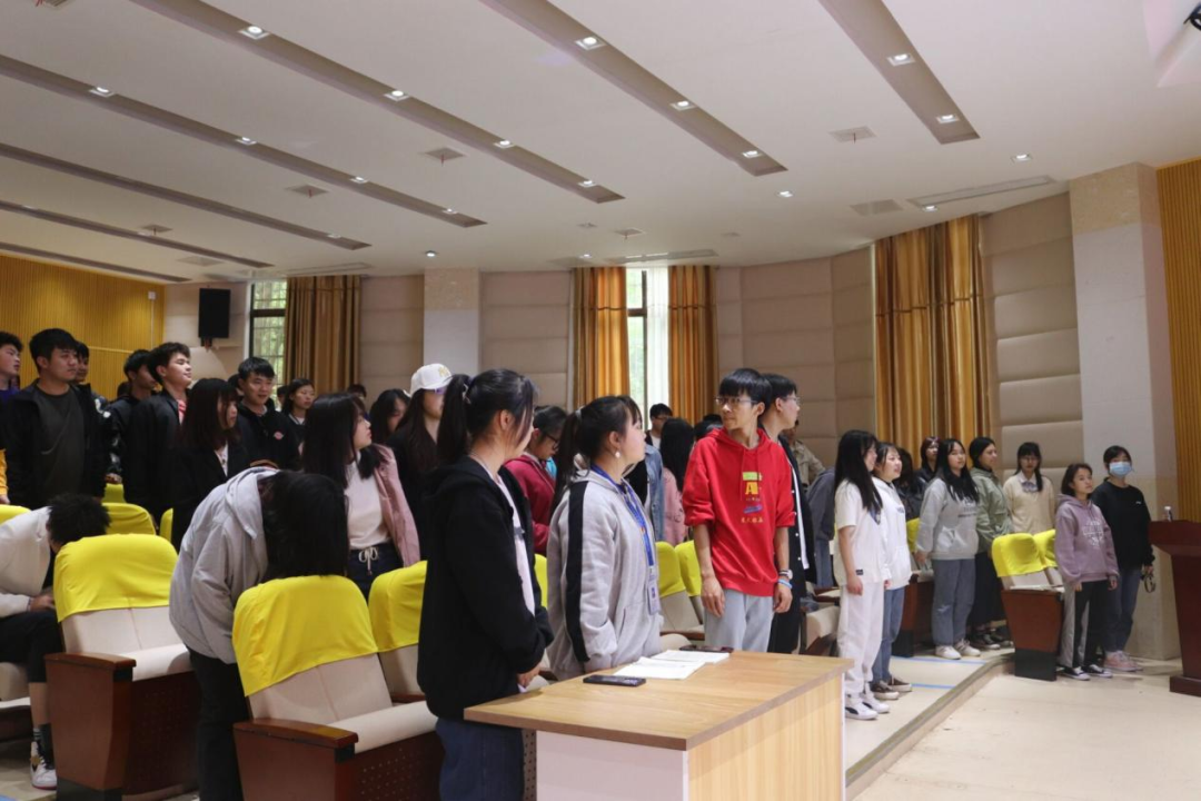 熊薇在讲述形体礼仪时,还鼓励全体同学站起来,展示自己的站姿。