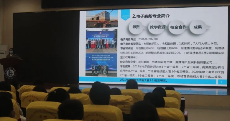 会上,老师们从电商行业概况、专业师资、专业培养目标、课程设置、专业技能、校企合作、就业方向、工作岗位、学习建议与要求等多个方面开展介绍。此外,还鼓励新生们积极参加各种集体活动和专业技能竞赛,要求学生在今后的校企合作项目中展现吃苦耐劳,坚韧不拔,钻研探索的精神。