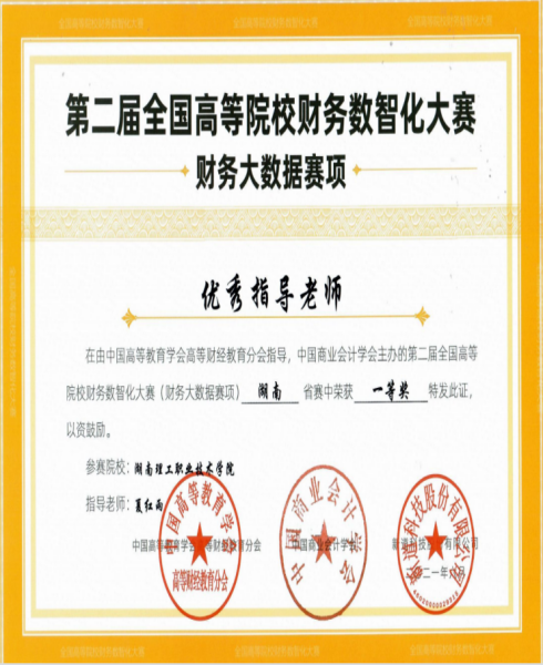 【专业特色】大数据与会计专业为我校的传统优势专业,星级骨干专业,重点建设专业,获湖南省职业院校技能竞赛一等奖,在湖南省专业技能抽查中获优秀等级。以“工学结合”为原则,建立了校企共育的人才培养模式,以业财融合管理会计为视角建立了专业课程体系。专业师资力量雄厚,有专任教师11名,副教授5人,全部为双师型教师,80%为硕士以上。