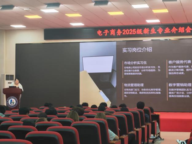 活动伊始,电子商务专业负责人谭富对专业进行了全面而深入的介绍。她从专业培养目标、课程体系设置、实践教学环节等方面展开详细讲解,让新生们对电子商务专业有了更加清晰的认识。专业课程体系涵盖了电子商务的各个核心领域,包括电商运营与管理、网络营销策划、电子商务数据分析等。通过系统的学习,学生们将掌握电商运营的关键技能,具备解决实际问题的能力。同时,专业还注重校企合作实践教学,拥有先进的电商实训室和多个校外实习基地,为学生提供丰富的实践机会,让他们在实践中积累经验,提升专业技能。
