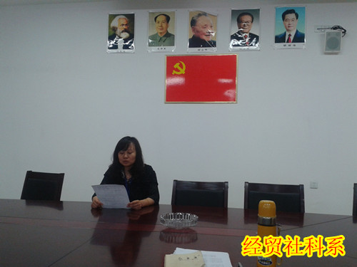 (通讯员: 周星岚)根据系党总支统一部署,教工党支部于5月14日下午在系党员活动室以“如何在双创工作中做一名合格的党员”为主题开展了一场意义深刻的专题民主生活会。参会人员有系总支书记谭境佳、副书记曾丹及经贸系全体教工党员,会议由教工支部书记周星岚主持,会议主旨是把巩固学习实践科学发展观活动落实到“双创”攻坚冲刺阶段的具体实践之中,充分发挥党组织的宣传动员、组织引导作用和党员的先锋模范、典型带动作用,把全体党员推向“双创”攻坚第一线,为“双创”工作提供坚强的组织基础和人员保障,确保文明高校和示范性高职院校创建顺利通过验收。