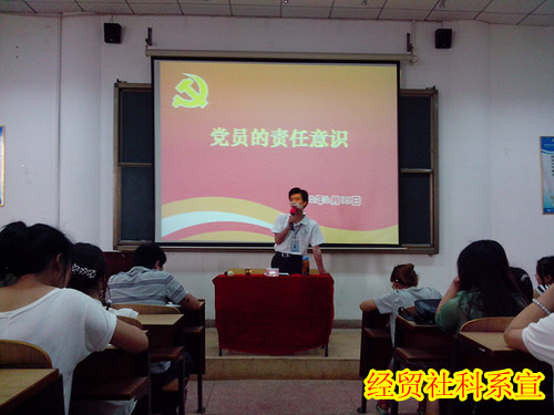 (通讯员:昌建强 赵飞)6月13日上午,经贸社科系党总支书记谭境佳老师在三教多媒体四组织开展了以“增强党员的责任意识”为主题的党课学习讲座。与会者有党总支副书记曾丹老师、团总支书记李强老师、学工支部书记昌建强老师、阮筱棋老师及系学生党支部所有党员、预备党员、入党积极分子。