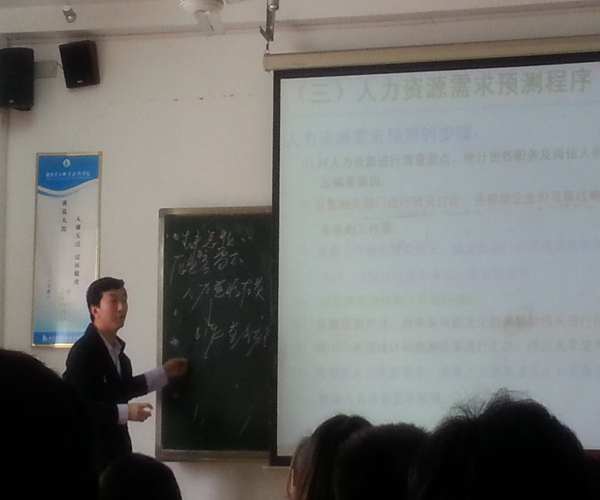 课堂上,代老师通过PPT教学素材,讲解了“人力资源需求的预测”的有关知识,熟练的多媒体教学手段和较好地应用启发式教学方法,教学效果良好。课后,朱院长与周围的学生进行了交流。随后,朱院长来到系部办公室,认真听取了系谭境佳主任的工作汇报,并与鲁柠等教师就教学改革等问题,进行了交流。