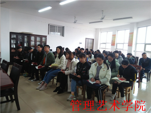 为加强我院全体教职工与学生党员的常规教育管理,深入推进党员政治学习新常态。管理艺术学院党总支于3月20日下午,在明理楼南栋党员活动室集中开展三月份政治学习,学院全体党员教师及学生党员参加了此次集中学习。