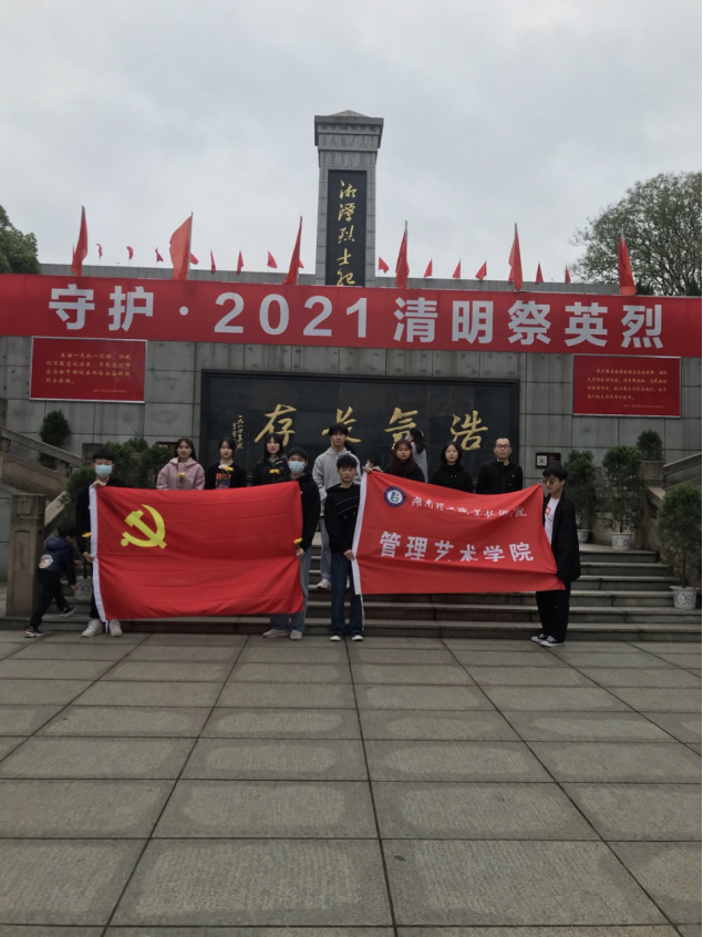 为缅怀革命烈士,弘扬民族精神,加强党史教育和爱国主义传统革命教育,4月4日清明节,管理艺术学院学生第一、第二党支部赴湘潭烈士陵园开展清明节祭扫活动,凭吊革命先辈,向英勇献身的革命烈士表达崇高的敬意。