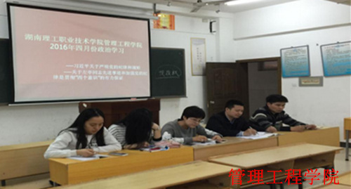 为了加强学生党员对党的更全面的认识和了解,提高学生党员同志的思想境界,管理工程学院于2016年4月12日下午,在三教504教室共同学习《习近平关于严明党的纪律和规矩论述摘编》及“ 左亭同志优秀先进事迹”,管理工程学院党总支副书记、副院长欧又瑞、学生党支部一支部书记毕业、辅导员李婷、马任兰、学管干事马云老师及全体学生党员参加了会议。会议由学生党支部二支部书记昌建强老师主持。