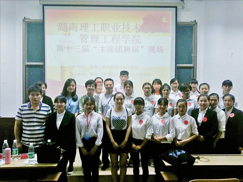 最贴心的帮助,最专业的服务。最真诚的交流,最快乐的成长!您的期待学主席团,我们一起打造。管理工程学院于6月16号7点30分在三教510举办第十三届“主席团换届”选举大会。莅临本次会议的有管理工程学院党总支副书记欧又瑞,团总支书记李婷,学管干事马云,辅导员昌建强、朱彬、毕业、马任兰。以及管理学院主席团和各班班干部代表。