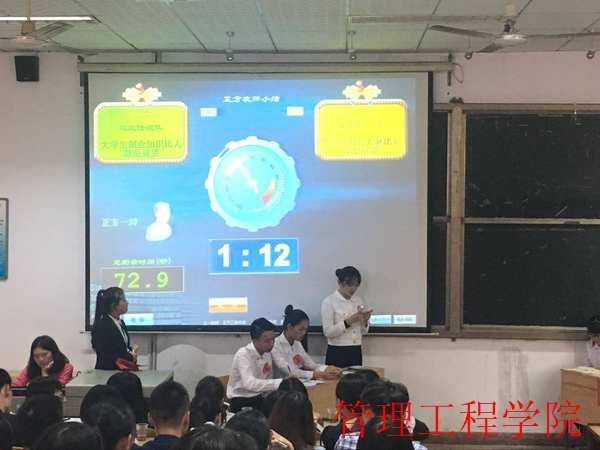 为了丰富大学生的课余生活,提高大学生的综合素质,10月20号下午2点由管理工程学院学习部举办的第十届“理工杯”辩论赛决赛在三教110教室激烈展开。此次辩论赛是以“大学生创业人脉更重要还是知识更重要”为主题。本次到场的嘉宾有党总支副书记欧又瑞、团总支书记李婷、学管干事马任兰、辅导员朱彬、毕业、李诗音;以及管理工程学院主席团全体成员、太阳能工程学院主席团、风能工程学院主席团。