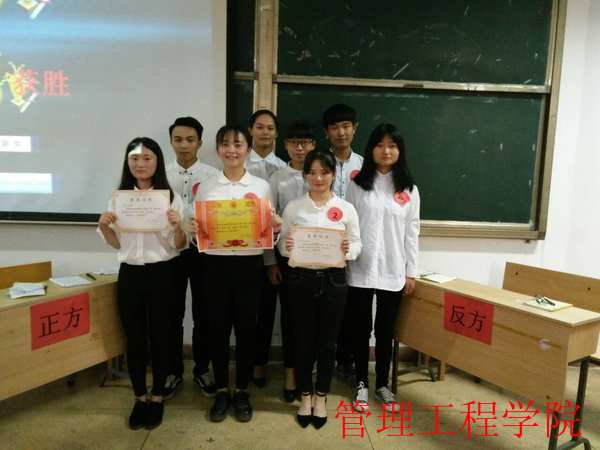 伴着主持人覃丹甜美的声音比赛开始了。正方观点为:大学生创业知识比人脉更重要; 反方观点为:大学生创业人脉比知识更重要。台上选手个个信心十足,双方展开了激烈的辩论,都派上了自己强大的阵容,比赛也非常激动人心。两方的辩手们配合默契,他们妙语连珠,当仁不让;他们旁征博引,将整个比赛带入了一个又一个高潮。台下的观众也相当激动,仿佛自己也投入了比赛中。双方比赛结束了,由正方代表做了一个总结:他们没有失败者,在辩论中一起竞争一起成长,不仅提升了自己,也发现了自己的不足。最后欧书记为他们做了总结,提出了双方的不足,正方缺少证据,而反方提供的文献很足。而经过一个多小时的激烈辩论,最终正方赢得了比赛!