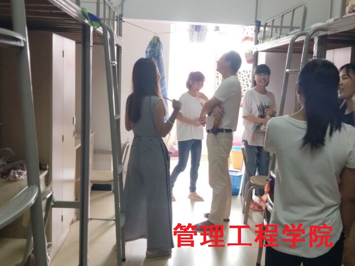 2017年9月19日中午12点30管理工程学院学工战线的全体班主任辅导员在学院党总支副书记欧又瑞带领下,下到宿舍,对学生宿舍进行安全,卫生大检查。在检查过程中,发现学院大部分宿舍都已做到宿舍卫生、干净、整齐;对于小部分床铺没有叠被、桌面凌乱等问题,班主任和助班亲自指导同学加以整改,以保持寝室环境整洁