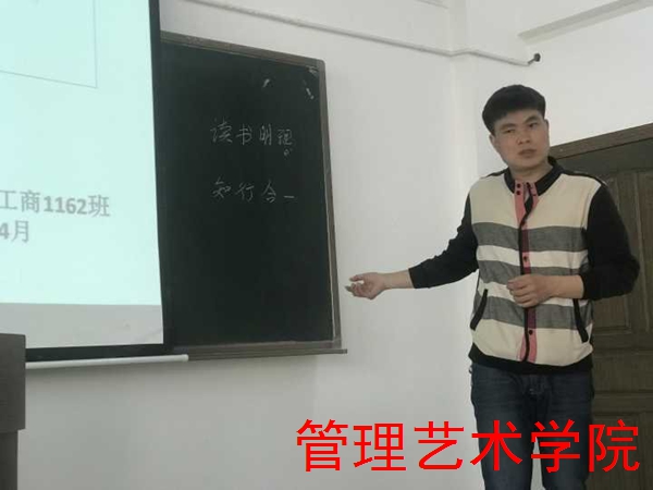 为了全面落实“四个一工程”育人项目(“每周一书、每日一记、每课一讲、每人一语”)。贯彻执行国家教育部“立德树人”办学理念和实现“四个一流”建管理工程学院管理员设目标。提高同学们学习积极性,增加同学们的阅读量。管理艺术学院工商1162班于4月16日下午在明理楼504开展读书分享会。
