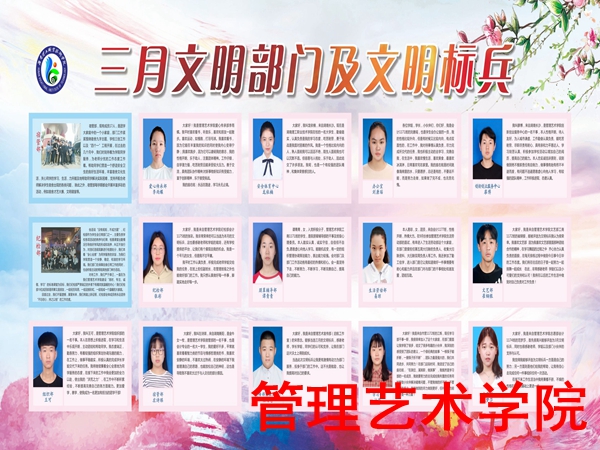 文明和谐的环境是孕育人才的必要条件,管理艺术学院于四月份进行了三月文明部门及文明标兵的评比。参与本次颁奖的有校团委副书记李强、我院团总支书记李婷,团总支学生会主席团成员。