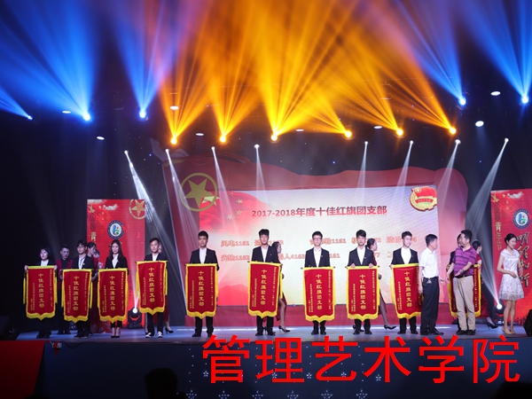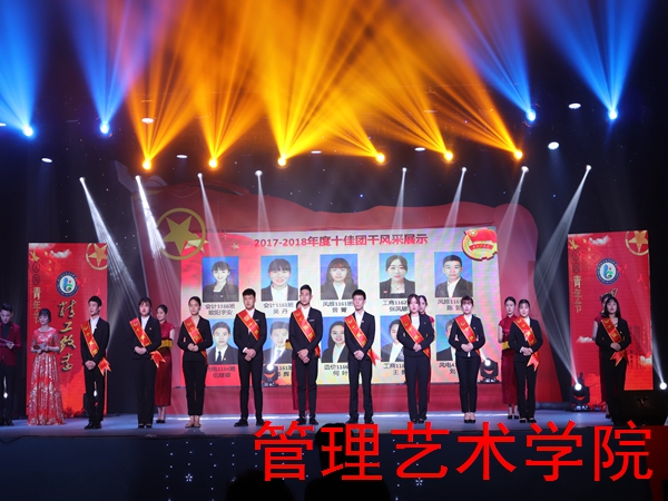 晚会对时刻不忘自己的职责,积极进取的共青团员进行颁奖。他们不断地塑造高尚的人格和情操,勤于思考。为成为中国特色社会主义事业的建设者和接班人,不断付出努力。管理艺术学院会计1177班欧琳江、环艺1173班邝丽芳、工商1173朱坤鹏获得“十佳团员”称号,会计1166班欧阳宇安、会计1161班吴丹、工商1162班张凤娜、工商1164班王薇获得“十佳团干”称号,会计1161、会计1177、工商1173获得“十佳红旗团支部称号”。
