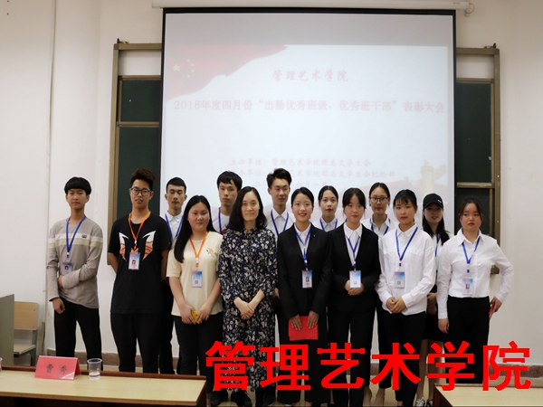 2018年6月1日,管理艺术学院团总支学生会纪检部于明理楼510教室举办了2018年度四月份“出勤优秀班级、优秀班干部”表彰大会。出席此次大会的嘉宾有团总支书记李婷,学管干事曹秀,辅导员朱睿、郭亚婧、以及主要学生干部参加。