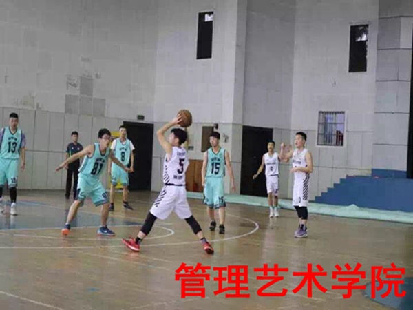 “理工杯”篮球赛决赛在体育馆顺利举行。管理艺术学院代表队征战新能源学院。