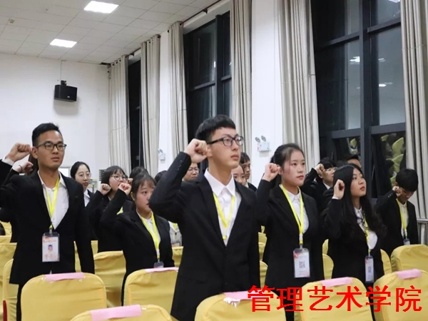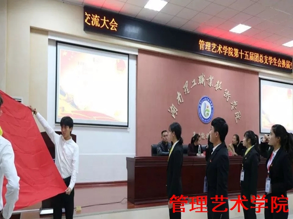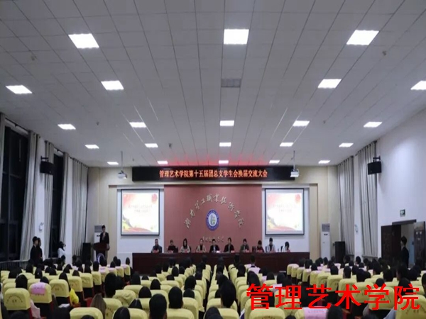 2018年11月22日18时,管理艺术学院团总支学生会在图书馆报告厅举办了第十五届团总支学生会换届交接仪式。出席本次大会的有管理艺术学院党总支书记、院长谭境佳,党总支副书记、副院长欧又瑞,副院长夏红雨,团总支书记郭亚婧,辅导员李婷、毕业、朱彬、李诗音、周冠兰、文茗,管理艺术学院团总支学生会全体成员以及校学生会、社团联合会、学校护卫队和各院主要学生干部代表。
