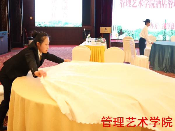 2018年11月30日下午由湘潭市盘龙山庄大酒店和湖南理工职业技术学院管理艺术学院共同承办的“校企合作,深度融合”中餐摆台技能竞赛在盘龙大酒店会议厅正式拉开帷幕,经过一个月的赛前各项准备,15名参赛选手早已信心满满,蓄势待发,随时迎接挑战!