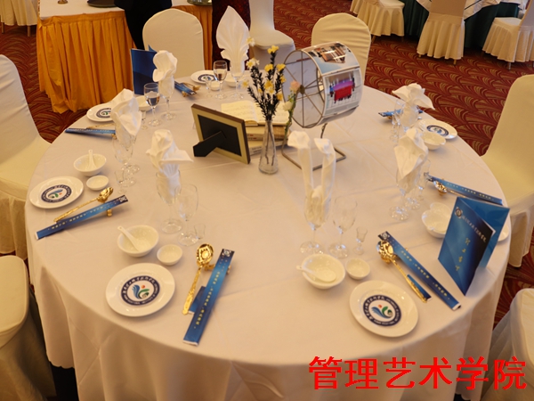 评委丁琪老师说;中餐宴会主题设计从主题的选择,中心艺术品的设计到技能摆台,对学生都有非常高的要求,如:选题的创意性、实用性、和中心艺术品美观性与主题的吻合性,技能摆台的精准度非常高,整个比赛过程有数十条评分标准;三点成一线、中心线对齐、各种不同口布折花、标准的斟酒服务等,各项操做都要求各位选手熟练准确到位。