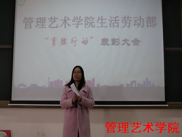 12月14日,管理艺术学院团总支学生会在明理楼510教室举行“弯腰行动”表彰大会,参加本次大会的有管理艺术学院团总支书记郭亚婧,辅导员朱睿、文茗以及团总支学生会主席团成员和“弯腰行动”志愿者代表。