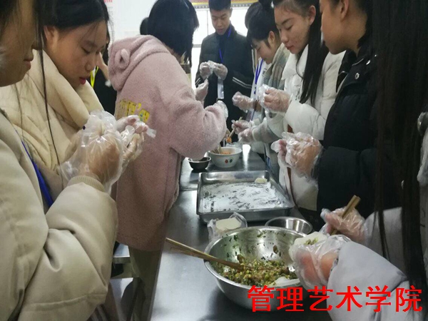 冬至是二十四节气之一,也是我国一个传统节日。“冬至吃饺子”是我们中国人自古的习俗。管理艺术学院围绕“家国情怀”培育与“人生价值”塑造,创新教育活动形式。12月21日在博爱楼2楼食堂开展了以“饺子宴骄子、情浓文化浓”为主题的包饺子活动,大家在一起提前度过了一个别开生面的冬至!管理艺术学院郭亚婧老师,朱彬老师以及团总支学生会部分学生代表参加了活动。