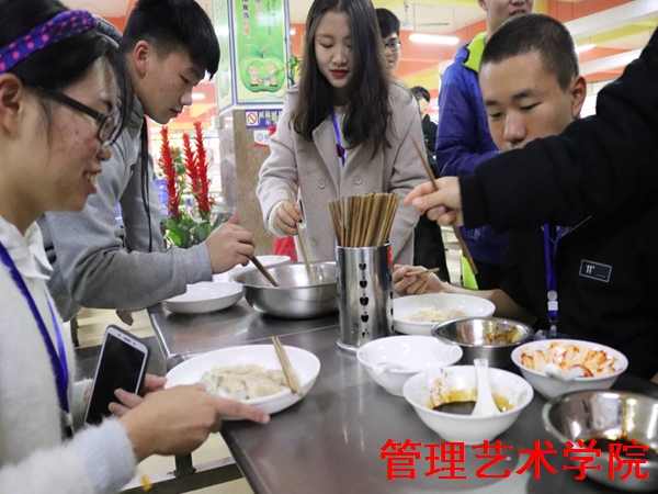 当天下午2:30,参加活动的师生们早早到食堂准备包饺子食材和工具,擀面皮,和馅料,大家一起动手包饺子,现场热情高涨,每个人都忙的不亦乐乎,大家一边忙活一边交谈,食堂洋溢着欢快的气氛,感情融洽、温暖备至。1个小时后,热腾腾的饺子出锅了,师生一起品尝自己“杰作”,分享劳动过后的喜悦。