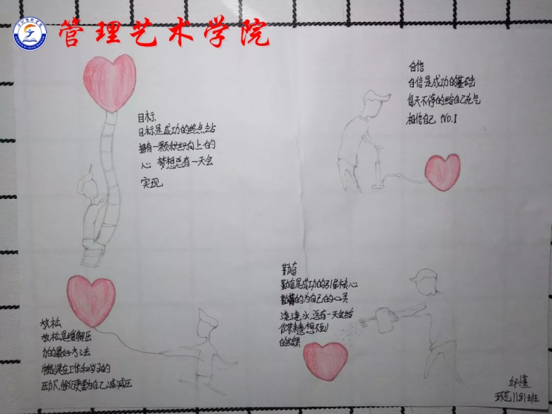 环艺1182班龚雅、谢双、严明月:心理压力对于一个积极的人来说,可以激发他的潜力,让他变得更优秀。