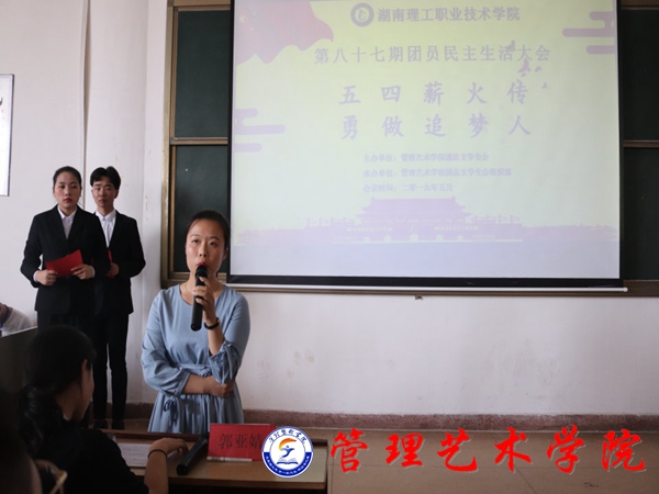 为引导广大青年适应新时代社会发展的要求,增强同学们的爱国热情和民族自信心,5月28日管理艺术学院团总支在明理楼510教室召开第八十七期团员民主生活大会,莅临本次大会的嘉宾有管理艺术学院团总支书记郭亚婧,团总支学生会主要干部及各班团支部小组成员。