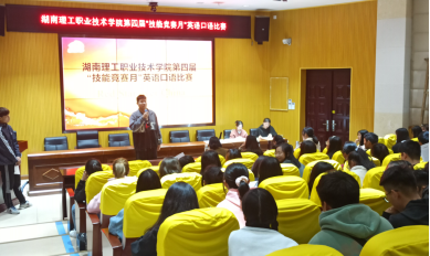 2021年11月16日下午,由思政教育工作部举办、英语教研室承办的“湖南理工职业技术学院第四届‘技能竞赛月’英语口语比赛”在知行楼报告厅成功举行。本次比赛共有167名同学报名,是历届同类型比赛报名参赛人数最多的一次。评委组由胡明先、海源、陈黎明和杨卉四位老师组成,主持人由胡明先老师担任。