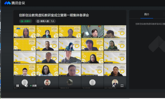 2022年2月26日上午,学院就业与创新创业课程团队全体教师以“云共享”形式,召开了新学期第一次集体备课,参加了广州番禺职业技术学院和机械工业出版社虚拟教研室召开的第一期集体备课会。