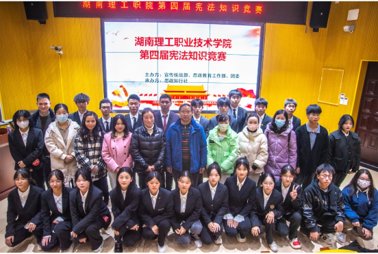 学习二十大精神,共话宪法信仰。第四届宪法知识竞赛的开展,彰显了湖南理工职院法治教育的不断深入,增强了我院师生的法律意识,提升了法治素养,既是学校“三全育人”理工模式全面提高学生成长成才能力的课堂学习,也是学校思政课教学改革实践教学的“第二课堂”。我院将继续深入开展社会主义核心价值观和社会主义法治理念教育,把习近平法治思想落实到教育教学工作中,推进习近平法治思想落实进教材、进课堂、进头脑,努力培养造就更多具有坚定理想信念、强烈家国情怀的德技兼修高素质技能人才,多措并举引导学生做宪法的自觉遵循者和坚定捍卫者,为奋进新征程汇聚法治力量。