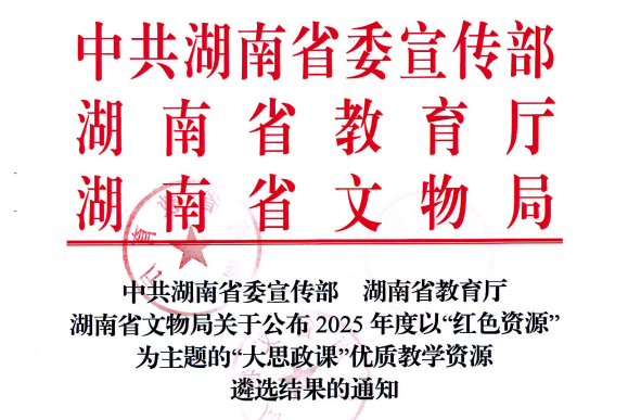 此次入选省级优质教学资源,既是对我校思政工作的充分肯定,更是对未来发展的有力鞭策。学校将以此为新起点,坚持以习近平新时代中国特色社会主义思想为指导,持续推进“湖湘资源+”大思政课建设,拓展实践育人与网络育人阵地,深化与红色教育基地合作,开发更多优质教学资源,打造具有湖湘特色的思政教育体系,培养更多担当民族复兴大任的时代新人,为奋力谱写中国式现代化湖南新篇章贡献智慧与力量。(通讯员:胡灿)
