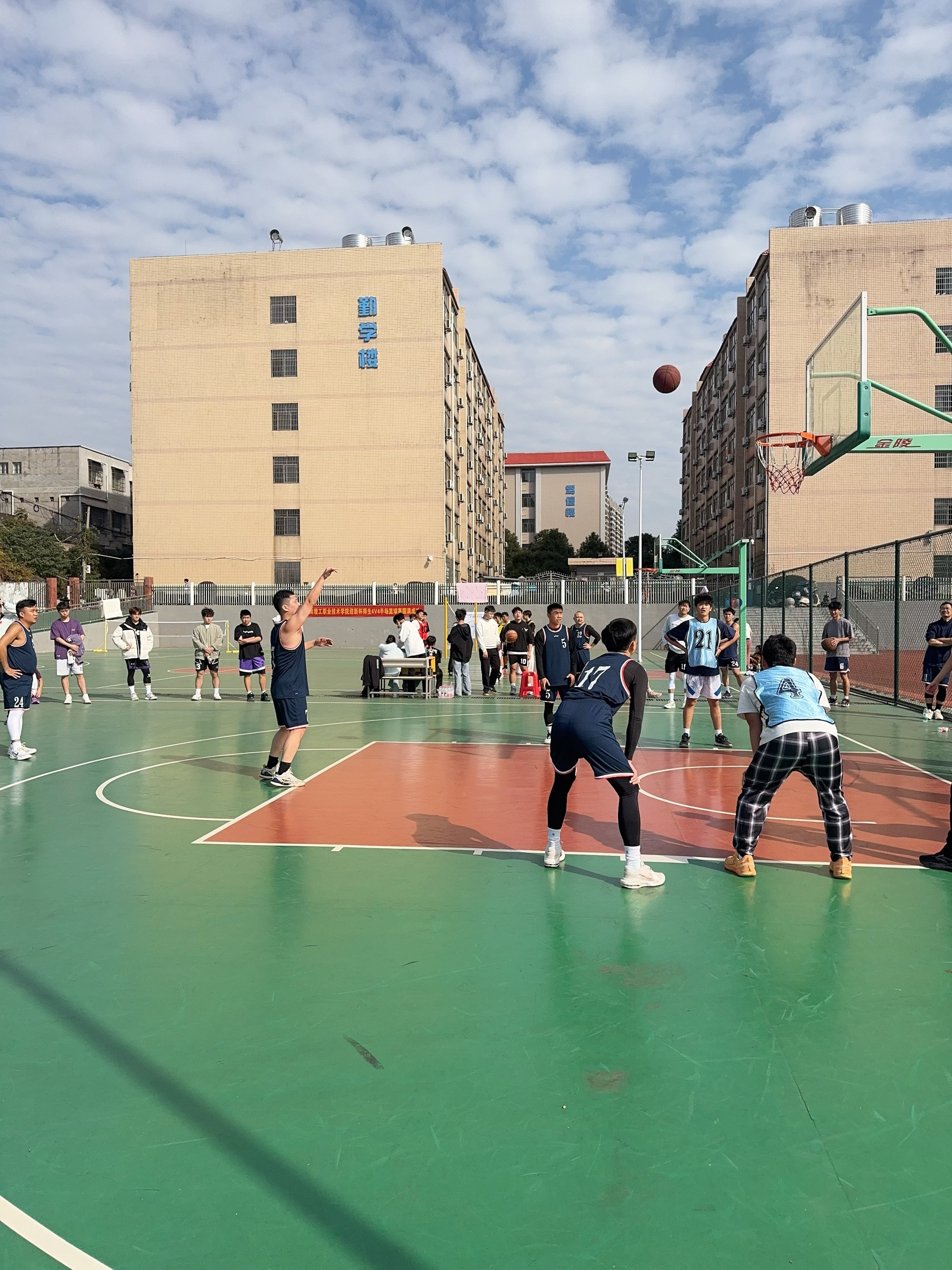 冬阳暖照,激情飞扬。2025年11月24日,湖南理工职业技术学院首届师生4V4半场篮球赛在田径场旁篮球场与室内体育馆同步开赛。14支师生队伍同台竞技、切磋球技,在“幸福理工,健康第一”的主题引领下,用汗水与欢笑演绎体育魅力,以竞技与协作深化师生情谊。