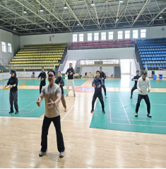 本次集体备课的核心内容为八段锦教学培训。为让全体教师熟练掌握动作要领、规范教学流程,教研室特邀杨文涛老师进行专业讲解与示范。杨文涛老师围绕八段锦的文化内涵、健身价值、动作规范及呼吸配合等方面进行细致讲解,对“两手托天理三焦”“左右开弓似射雕”“调理脾胃须单举” 等经典招式逐一拆解示范,耐心纠正动作细节,确保每位教师学得扎实、练得到位。在杨文涛老师的带领下,全体专兼职体育教师认真聆听、仔细观摩、积极练习。从身形站位到肢体舒展,从动作节奏到呼吸调整,大家相互交流、相互指导,在沉浸式练习中感受传统养生功法的独特魅力。
