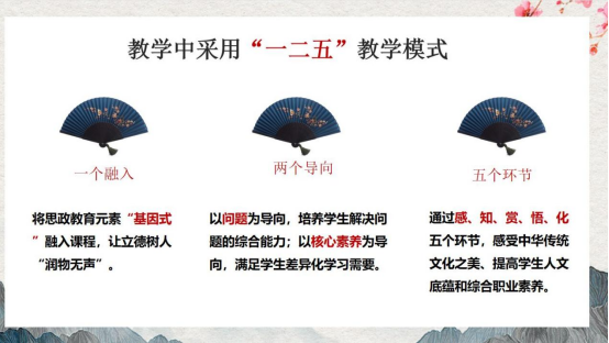 三、课程建设:具体教学中,我们结合学生认知规律,采用了“一融二导五环”的教学模式。