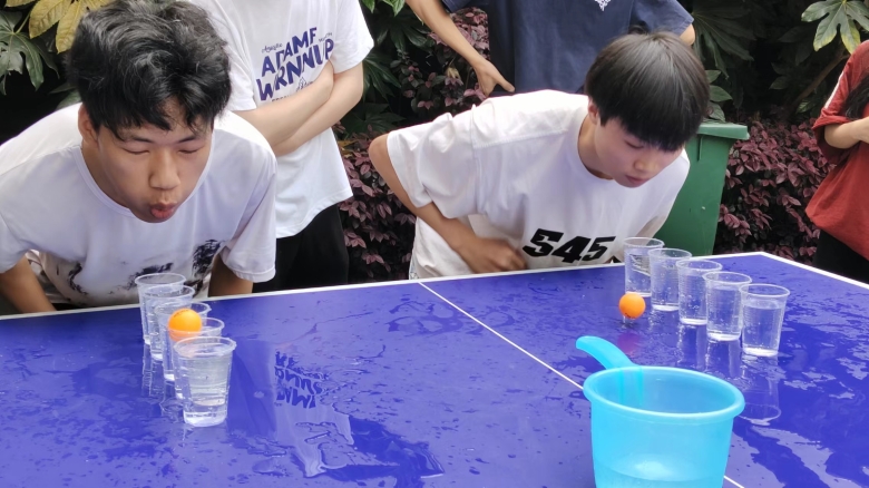 趣味赛道:在趣味比赛的现场,气氛热烈而欢快。选手们摩拳擦掌,准备在“赛道”上一展风采。有的选手巧妙地控制着球的走向,顺利通过各种关卡;有的选手则略显手忙脚乱,但依然充满热情,坚持到底。观众们的加油声、笑声此起彼伏,整个现场洋溢着欢乐的氛围。同学们在比赛中尽情享受着乒乓球带来的乐趣,忘记了烦恼。