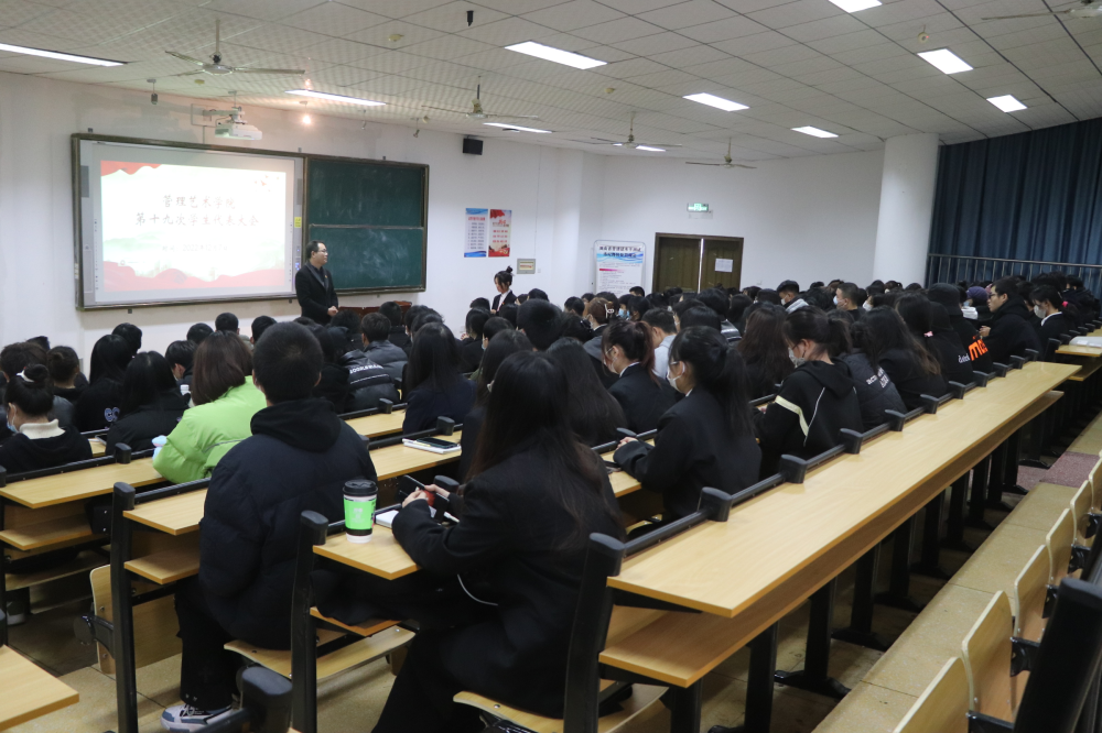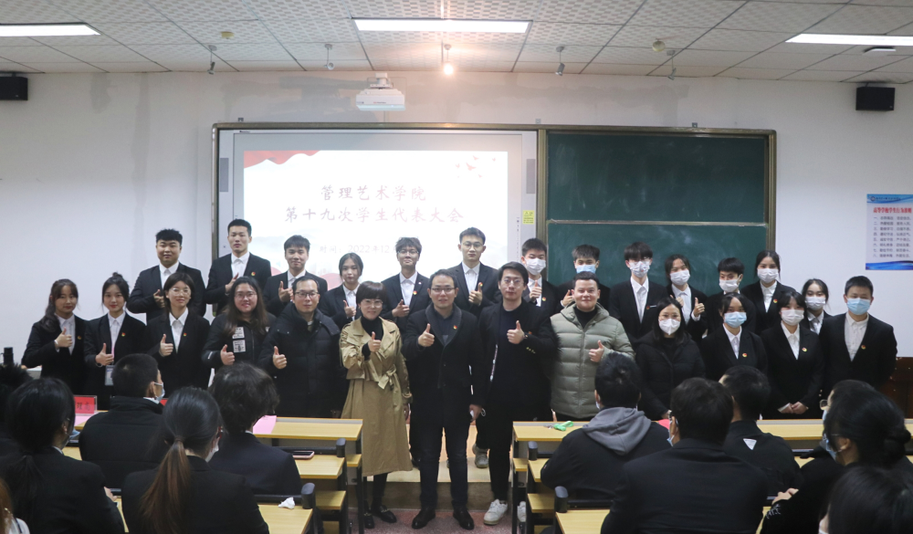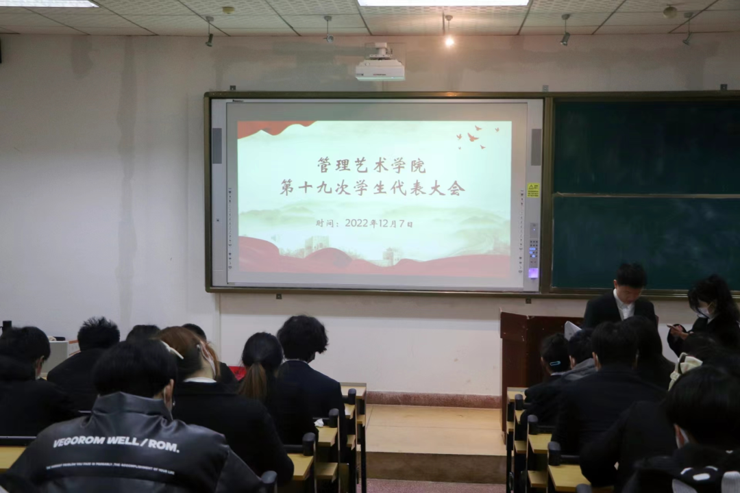 为深入贯彻学习党的二十大精神,做好青年工作,凝聚青年力量,管理艺术学院于12月7日下午在明理楼410教室举行了第十九次学生代表大会。出席此次大会的有团委书记、管理艺术学院党总支副书记李强,团总支书记李则君,学管干事彭理尚,辅导员毕业、文茗、朱睿、姜维及113名学生代表。