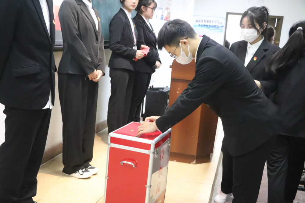 在检票员的监督下,各位干事分发选票,全场113名同学进行了现场投票。此次选举产生了学院新一届团总支学生会委员,他们分别是赵志阳、简晨、赵慧妍。