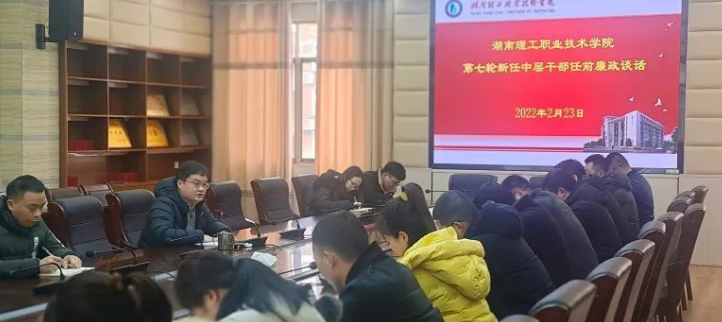 2月23日,学院纪委书记刘洋同志与2022年新提拔任用的4位副处级、7位正科级、13位副科级干部进行集体廉政谈话。目前教育行业反腐败斗争形势依然严峻复杂,学院会把严的主基调长期坚持下去,认真履行任职谈话制度,严把干部选拔任用廉洁关。坚持逢提必谈,逢谈必诺,任前廉政谈话全覆盖。