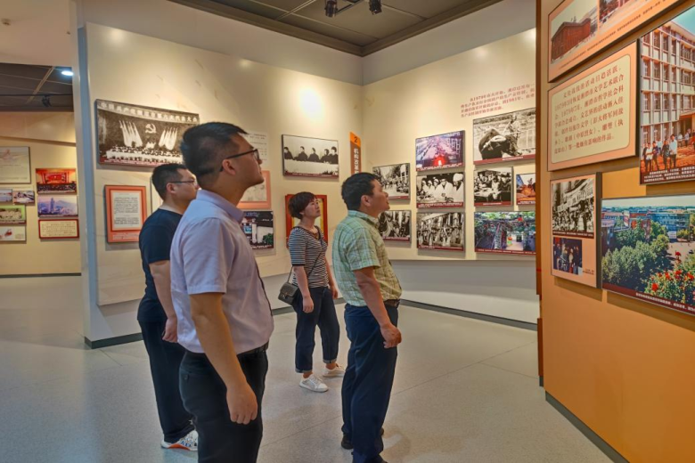 湘潭党史馆内图片展分为“觉醒”“革命”“建设”“改革”“筑梦”和“湘潭群英谱”六部分,以丰富翔实的图片资料,全面展示了中国共产党在湘潭萌芽发展的光辉历程和新中国成立以来发生的翻天覆地变化。随着支部书记葛庆的介绍,中国近现代史如一幅跌宕起伏而又惊心动魄的历史画卷,缓缓展现在党员们面前。大家驻足于一段段珍贵的文字、一幅幅珍贵的图片、一幕幕感人的革命场景前,思绪瞬间被带入到波澜壮阔和激情燃烧的难忘岁月。革命先辈们前赴后继、开天辟地、砥砺前行,点燃了大家不畏艰险、英勇奋斗、攻坚克难、一往无前的澎湃激情。大家纷纷表示,本次活动把学习课堂搬到红色教育基地,在现场接受红色洗礼,多维度带领党员重返历史现场,触摸有温度的共产党史,更深刻地感受到了党史馆历史镜鉴、文化熏陶、纯洁思想、锤炼党性的作用,进一步筑牢了理想信念“压舱石”,我们应该牢记湘潭这片红色热土上发生的革命故事,以革命先烈为榜样,铭记历史,珍惜当下,用实际行动践行学党史、悟思想、办实事、开新局。