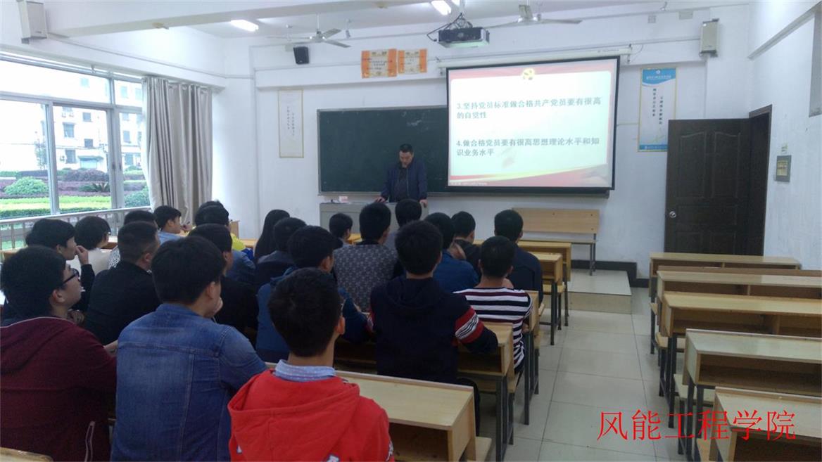 为响应号召,2016年4月20日至5月20日,在三教108教室,风能工程学院开展为期一个月关于“学党章党规、学系列讲话,做合格党员(后文简称‘两学一做’)”的党课学习。两学一做党课由风能工程学院党总支书记何瑛、副书记胡志军、风能工程学院学生支部第一书记朱礼、第二书记郭赟登任教,风能工程学院全体学生党员参加学习。
