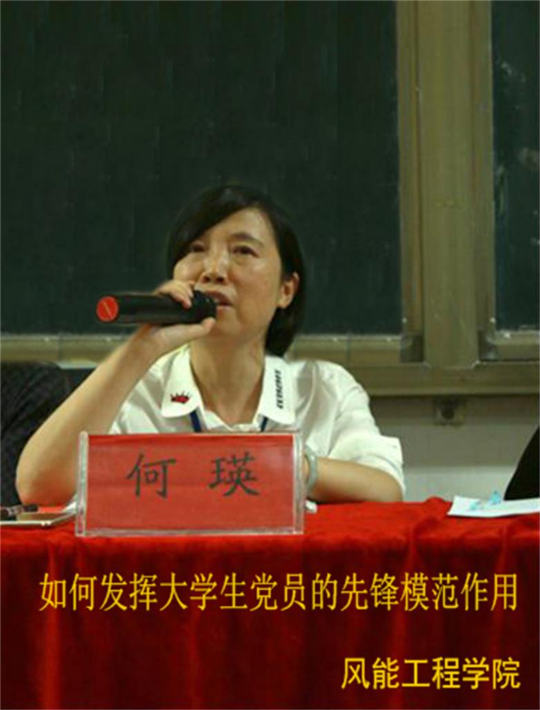 风能工程学院党总支书记何瑛在党课中强调:“两学一做,贵在调动学习积极性,增强党性意识。学习党章党规、学系列讲话精神,加强党性锻炼和道德修养;明确党员目标,把党 的思想建设放在首位,坚定理想信念,提高党性觉悟;增强政治意识,坚定正确政治方向;强化宗旨观念,勇于担当作为,主动作为,在学习、工作和社会生活中起先锋模范作用”。
