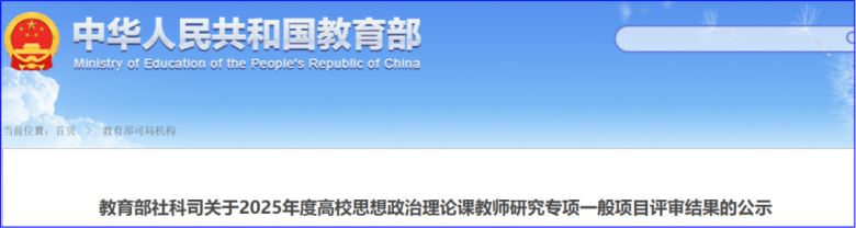 教育部高校思想政治理论课教师研究专项,是“高校哲学社会科学繁荣计划专项”的重要组成部分,该项目聚焦支持一线思政课教师深化教学研究、促进理论实践融通,切实增强思政课的育人实效与感染力。今年,全国范围内仅立项80项,竞争异常激烈。在此次遴选中,我校脱颖而出,为湖南高职在此次评选中争得一席之地,标志着我校思政课建设探索取得高质量突破。