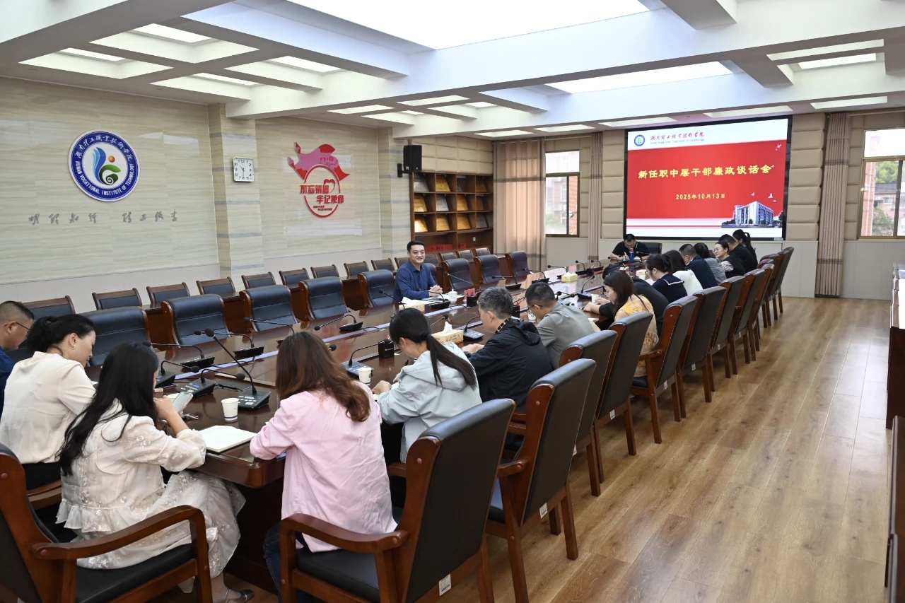 高峰指出,开展任职廉政谈话既是落实党内监督制度的重要安排,也体现了组织对干部的严管与厚爱。他对新任职干部提出四点要求:一要筑牢忠诚之魂,做政治坚定的“明白人”。坚持用党的创新理论武装头脑,不断提升“政治三力”,确保党中央决策部署和学校党委工作要求落地见效;二要扛起担当之责,做干事创业的“带头人”。迅速转变角色,锚定学校“四一两全”战略目标与“新双高”建设任务,在急难险重前敢闯敢拼,以实绩诠释担当;三要恪守用权之界,做清正廉洁的“干净人”。树牢正确权力观,严格执行“三重一大”决策制度,规范用权程序,自觉净化社交圈、生活圈、朋友圈,永葆政治本色;四要夯实作风之基,做服务师生的“贴心人”。大力弘扬务实作风,常态化深入基层听民意、解难题,以优良党风政风凝聚发展合力。