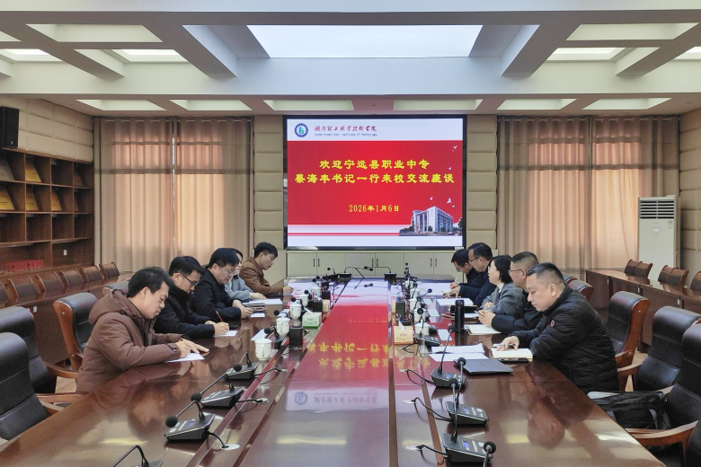 为深化中高职衔接,协同推进人才培养质量提升,1月6日上午,宁远县职业中专学校党委书记蔡海丰一行来我交进行交流座谈。双方围绕“三二分段制”合作项目的推进、学生转段考核及中高职协同育人等议题展开深入探讨。宁远县职业中专副校长蒋琼珍、刘继富,我校党委委员、副校长何瑛,党委委员、副校长王凤斌出席座谈。两校教务处、招生就业处(招生处)、党政办公室等相关部门负责人参加交流。