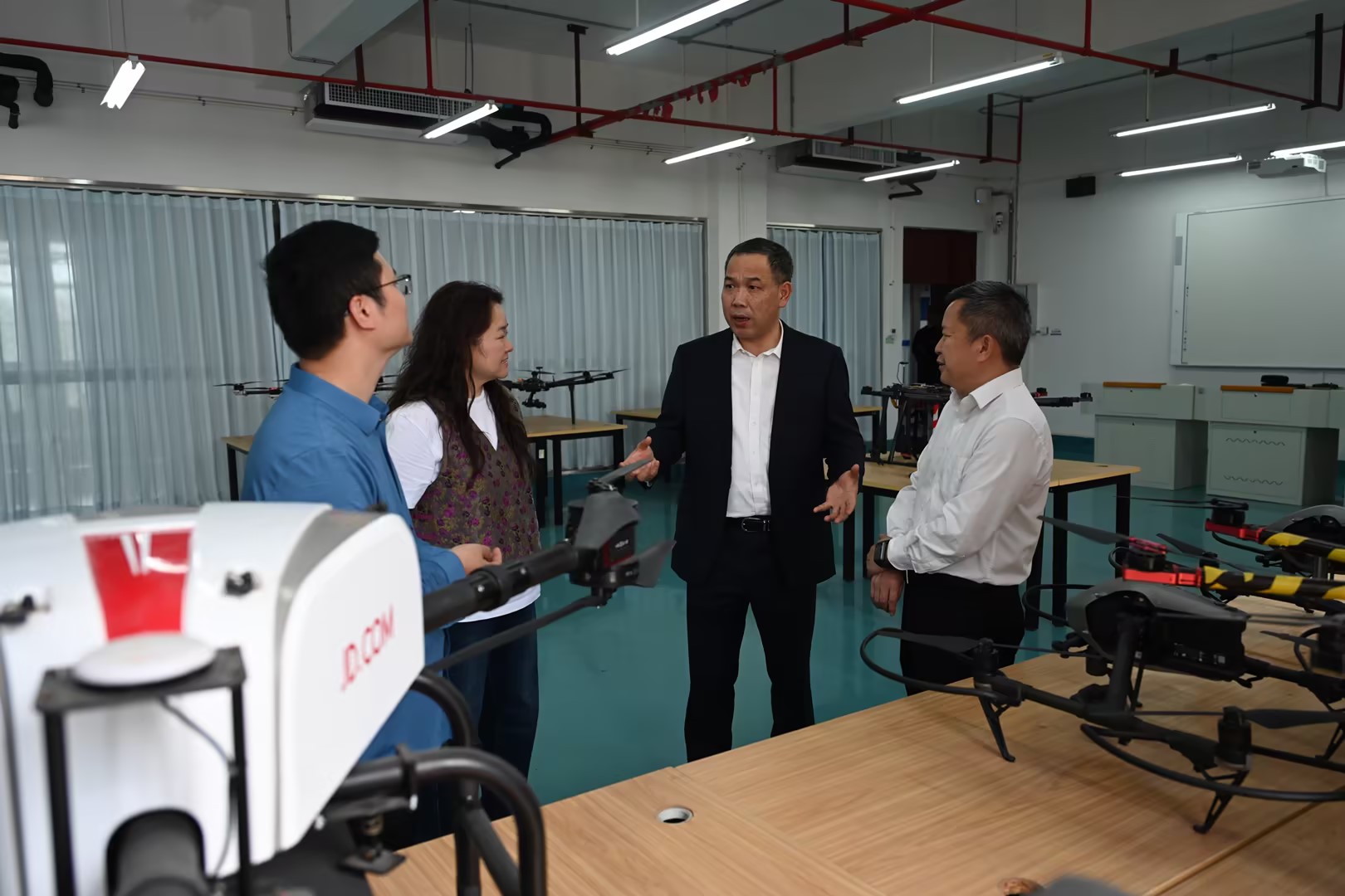 近日,省纪委监委驻省教育厅纪检监察组副组长刘卫平一行深入我校现场调研。学校党委副书记、校长刘婷,纪委书记高峰等陪同调研,党委书记叶星成出席座谈会。刘卫平一行实地走访了省公共实训基地、图书馆等地,重点参观了屋顶跟踪式光伏电站、工业机器人实训室,现场观摩了无人机人工智能及数字化拍摄技术演示。