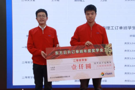 东方日升企业代表宣布23级、24级订单班奖学金获奖名单,并为获奖学生颁发荣誉证书。获奖学生代表彭佳豪、李忠垸在发言中表达了对学校与企业共同搭建成长平台的感谢,并承诺将珍惜机会、勤学实干,力争在未来职业道路上取得优异成绩。