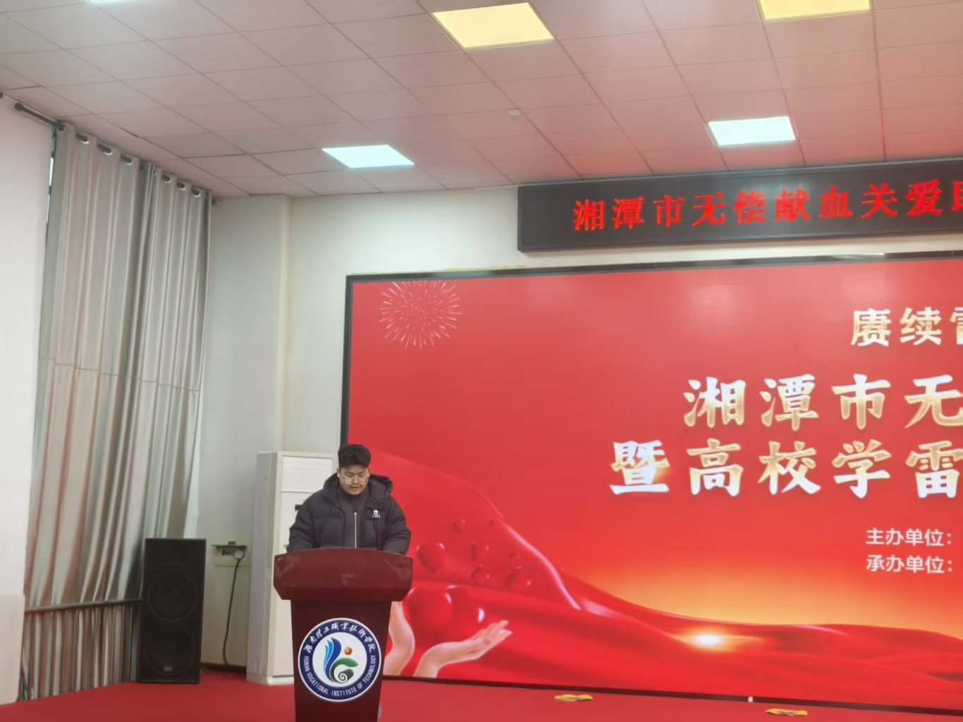 活动现场温暖庄重、氛围浓厚。湘潭市红十字会专职副会长颜曼玲宣读无偿献血倡议书,她以真挚恳切的话语,深刻阐释了无偿献血对于挽救生命、传递大爱、弘扬美德的重要意义,呼吁广大师生以举手之劳践行公益初心,以点滴热血传递人间温情,号召新时代青年主动扛起社会责任,以实际行动践行雷锋精神、彰显青春担当。