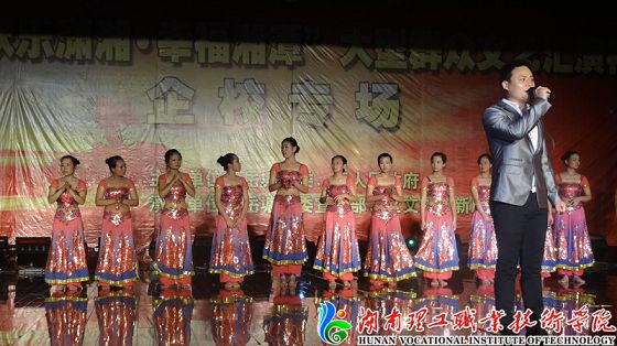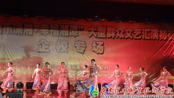 2014年6月18日下午,我院工会何主席以及院团委钟诚诚老师带领学生联合会大学生艺术团的成员参加由岳塘区委、区人民政府主办,岳塘区委宣传部、区文体广新局、区文联承办的岳塘区“欢乐潇湘,幸福湘潭”大型群众文艺汇演初赛校企专场。活动在岳塘区行政中心201会议厅进行。我们的节目作为最后一个压轴出场,一曲凤舞九重天惊艳全场。